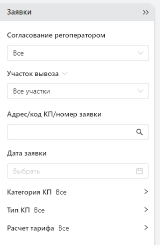 Обязательные к заполнению поля заявки - адрес, даты вывоза, основание, контейнеры.