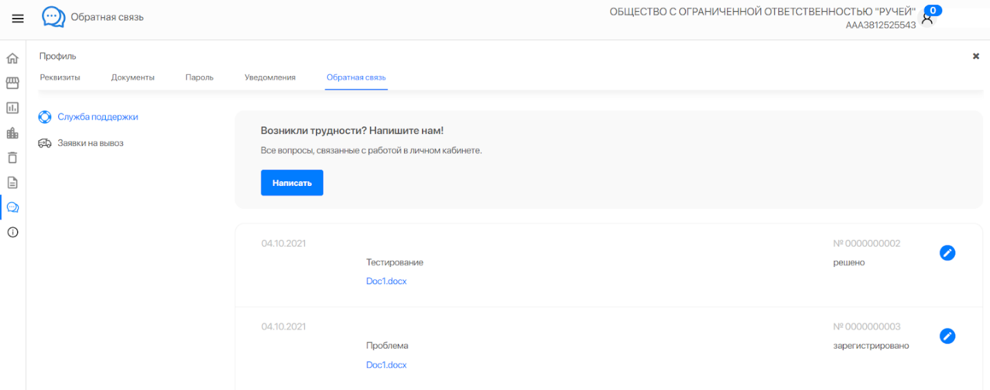 При необходимости связаться с менеджером, специалистом технической поддержки или просто оставить заявку на вывоз нужно посетить раздел “Обратная связь”.
