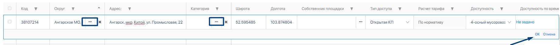 Дважды кликаем на площадку, которую нужно изменить. Таким образом активируется функция редактирования. Нажимаем на 3 точки в поле, которое требует обновления данных, вносим актуальную информацию. В завершении нажимаем [Ок].