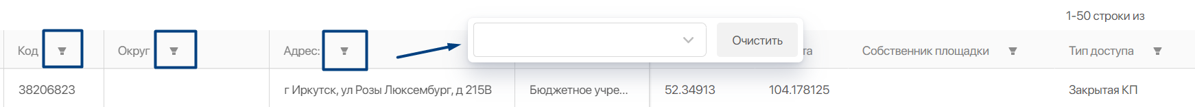 Данных о КП в реестре очень много, чтобы найти одну или несколько необходимых, советуем пользоваться фильтрацией. Она доступна практически в каждом столбце. Нужно просто нажать на значок фильтрации, ввести необходимые параметры и нажать [Enter].