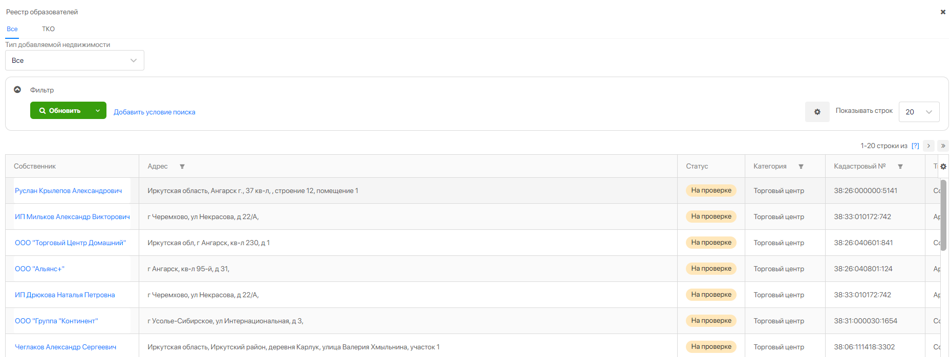 Просмотреть можно как всех образователей, так и подходящих под категорию “ТКО”. Нужно выбрать лишь нужную вкладку.