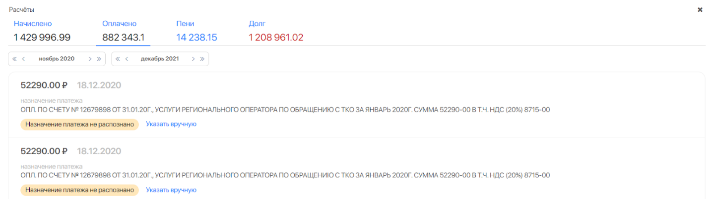В этой вкладке отображается сумма, которую клиент уже оплатил за пользование услугами.