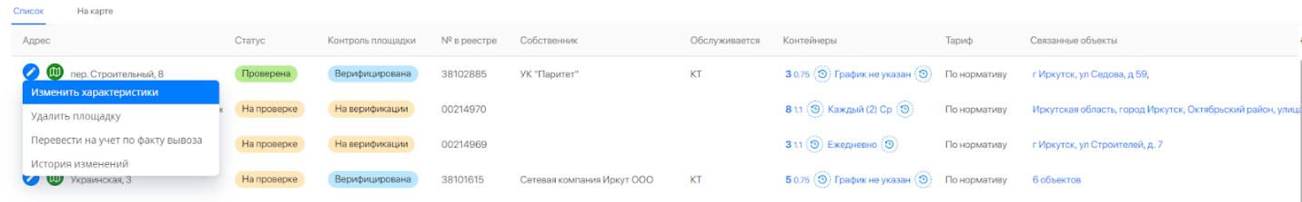 - Нажать на значок редактирования возле необходимого объекта и выбрать «Изменить характеристики»