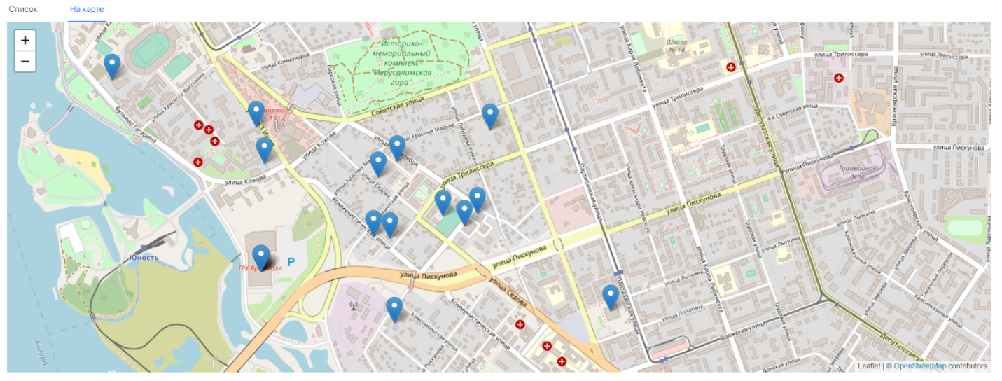 Если выбрать вкладку «На карте», то можно увидеть все добавленные объекты недвижимости на карте.